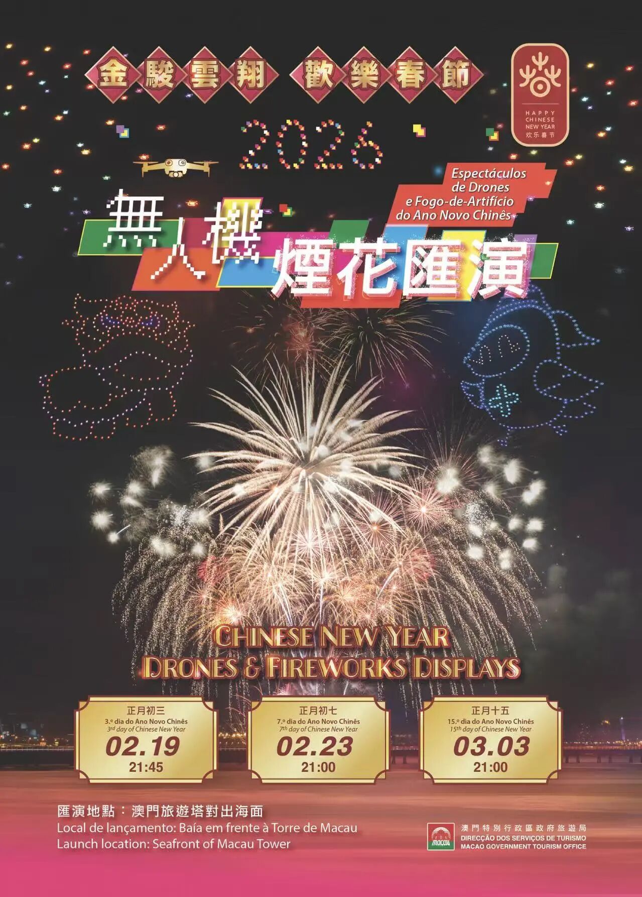 值得一提的是,“金骏云翔 欢乐春节”无人机烟花汇演是澳门首次引入的新春贺岁活动。