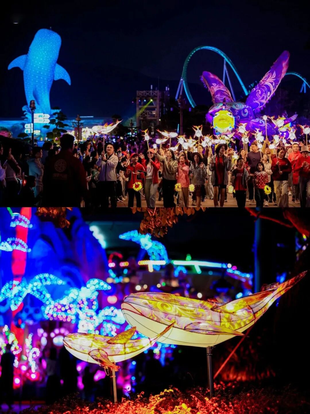长隆国际海洋度假区作为龙头景区,在春节假期人气爆棚,园区推出的“鲲鹏巡游大秀”、飞船乐园内的水下变脸与美人鱼贺岁等创新表演,成为吸引亲子家庭的“流量密码”。来自澳门的游客李先生表示:“从澳门家里开车过来不到一小时,就能带孩子看到这么精彩的巡游,年味非常足!”