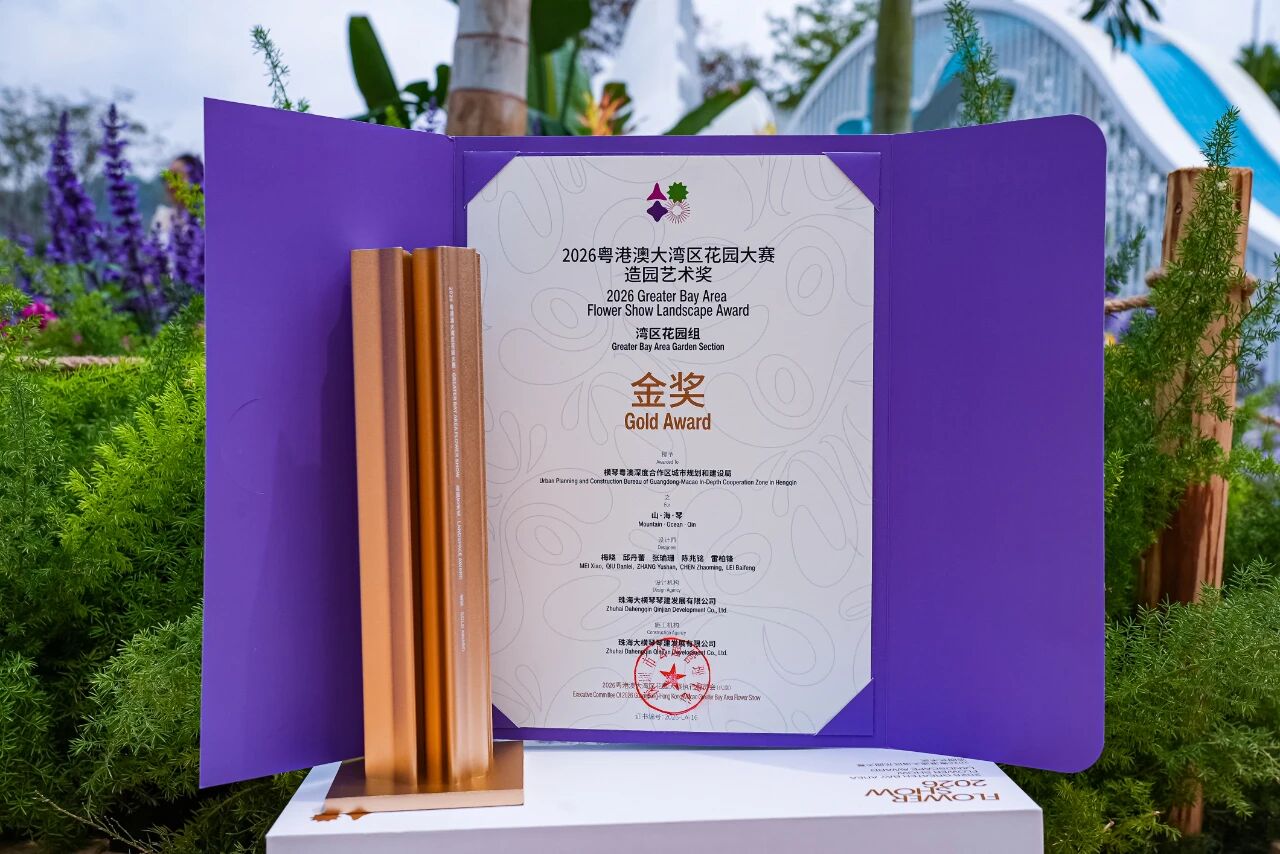 由横琴粤澳深度合作区城市规划和建设局打造的横琴花园“山·海·琴”惊艳亮相,荣获金奖、最佳设计奖。