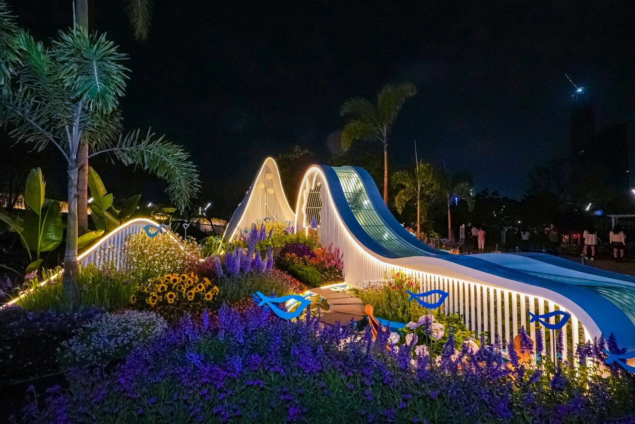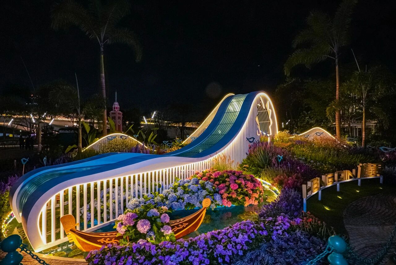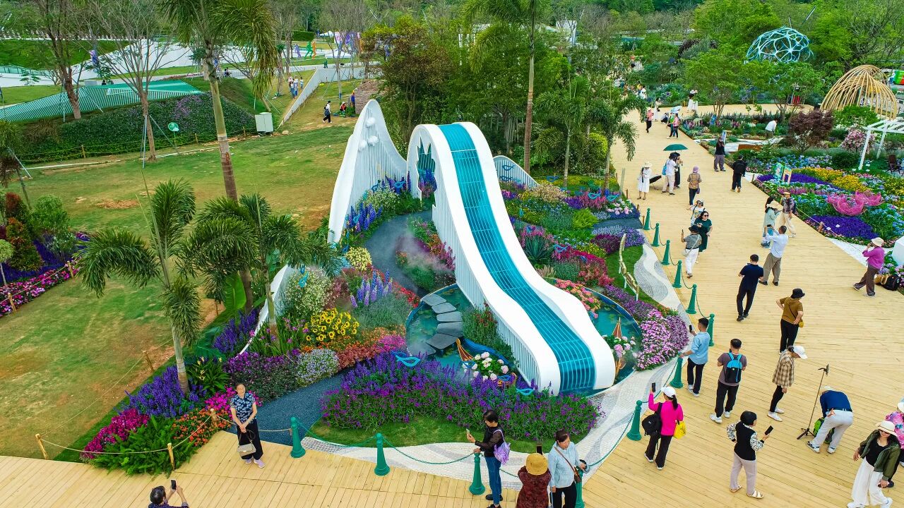 全园遍植紫、蓝、红、黄、白五色鸢尾花,与山海景致相映成趣,既契合花展主题,更暗合琴澳两地相融共生的发展底色。