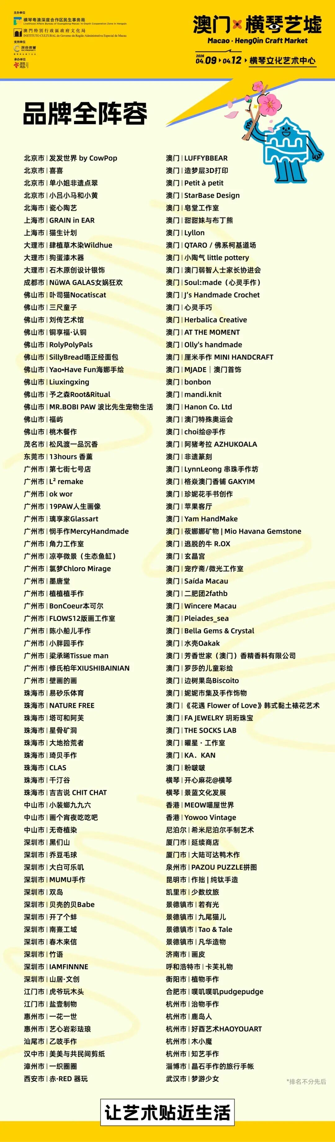 此次“澳门·横琴艺墟”共有来自北京/ 上海/ 广州/ 深圳/ 澳门/ 尼泊尔等34个城市及地区,150+文创手作品牌阵容集结出摊。