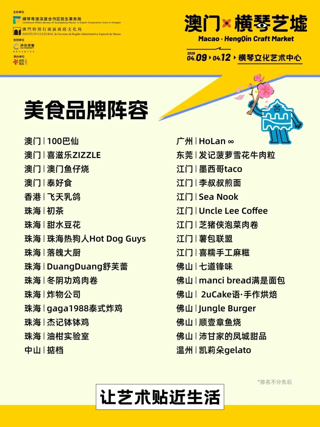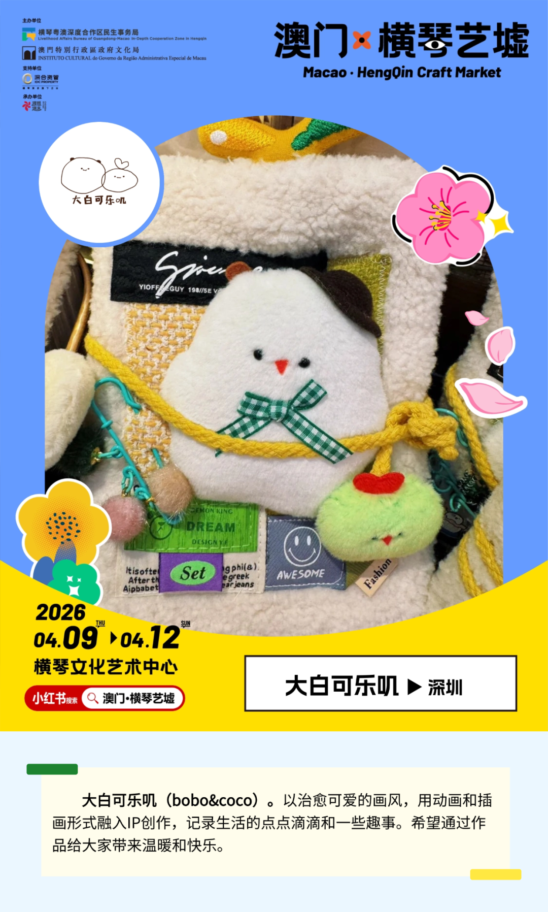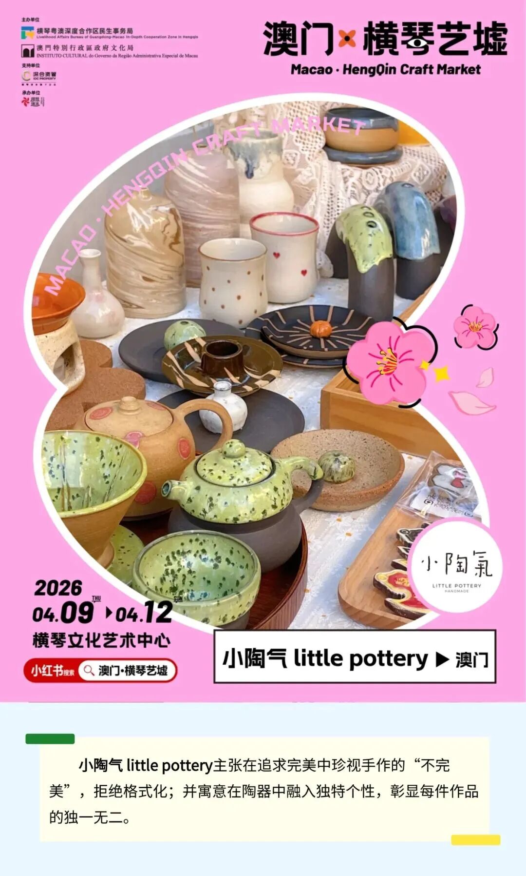 “北有赶集,南有趁墟”,春耕之际,“澳门·横琴艺墟”以“让艺术贴近生活”为约,邀来150位来自全国各地的创造者,于4月9日-4月12日登陆横琴文化艺术中心,连续4天免费开放。在琴澳“艺文桃花源”里,邀你暂别焦虑、放下匆忙,借一方手作、一件好物、一场相遇,让美与日常温柔相撞。