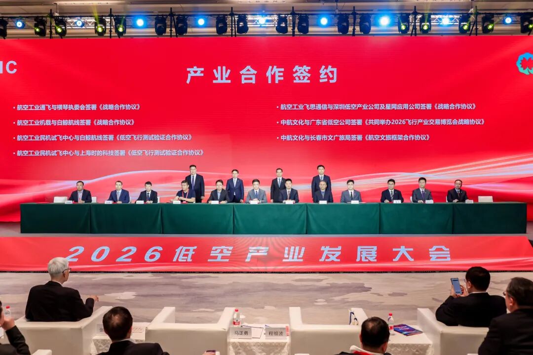 大会现场还进行了产品合作、产业合作项目集中签约。在产品合作方面,共签署了54架确认订单和156架意向订单,涉及京东天鸿科技、圆通速递、中航国际等企业。此外,航空工业集团与合作区执行委员会等多家单位签署系列战略合作协议,涵盖低空产业发展、飞行测试、航空文旅等领域,合作区执委会副主任李翀参与签约。