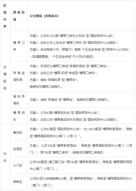 (四)因11月8日、9日横琴粤澳深度合作区将同步举行第十五届全国运动会自行车赛,相关道路封控及网球赛事观众车辆绕行安排如下: