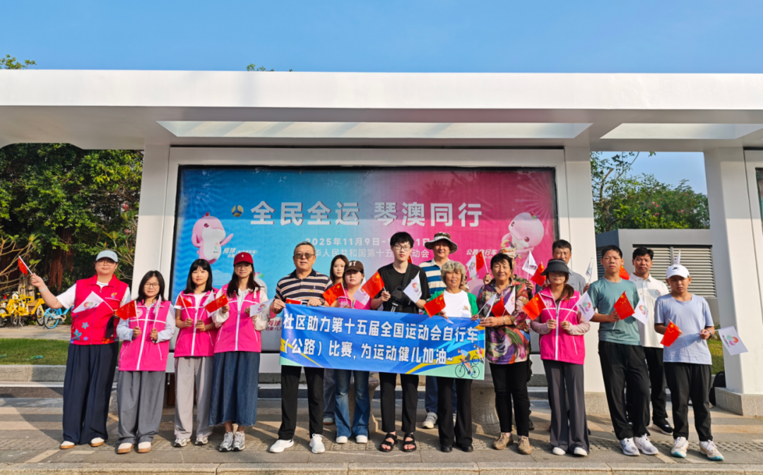 8日和9日,合作区民生事务局联合省横琴办社会事务局精心组织社区居民、青年志愿者、在校学生组建成一支约200人的啦啦队,在横琴中央汇、横琴国际网球中心、紫檀博物院、星乐度·露营小镇等自行车(公路)赛沿线赛道沿线为骑手呐喊助威,并安排志愿者全程讲解比赛规则和文明观赛礼仪,现场气氛热烈而有序,成为赛道旁一道动感十足的“青春风景线”。