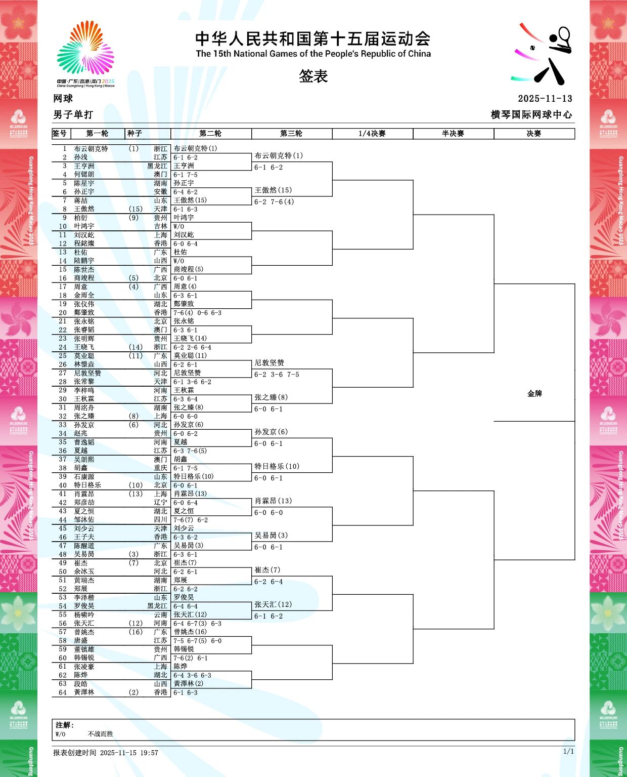 3号种子、浙江选手吴易昺本次比赛首度亮相中心场,最终以6:0、6:1击败了天津选手刘少云,成功闯入男单16强。作为中国网协首位在大满贯单打正赛获胜的男选手、首位ATP巡回赛单打冠军获得者,吴易昺也期待能在十五运会的舞台上取得好成绩。