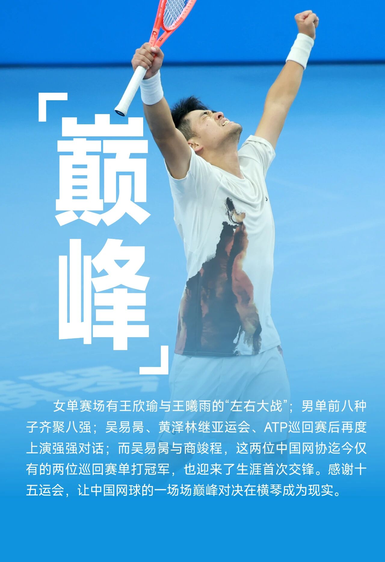 十五运会网球比赛已经落幕,清脆的击球声依然在空中回荡。在短短十二天的时间里,我们见证了少年初成的锐气,见证了巅峰对决的火花,更见证了梦想起飞的力量。就让我们用九个关键词,共同回顾这段充满激情与感动的网球之旅。