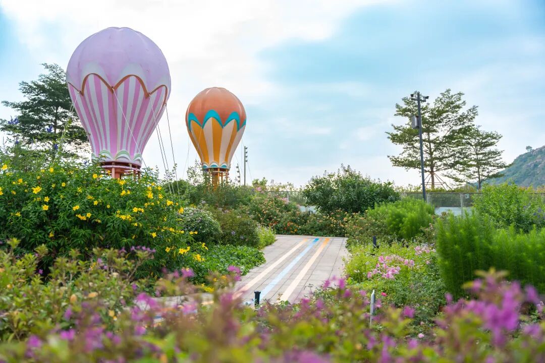 花海长廊二号驿站的 “花海时光慢邮” 超有仪式感,对着巨型邮筒给未来的自己写封信,以慢递的形式寄出。再喝一杯茶饮店特饮,阳光洒在小洋楼和灯塔上,慢时光里满是温柔。