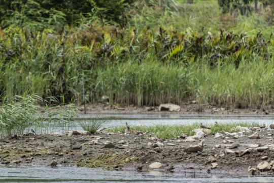 湿地的生态岛中营造了多处光岛光滩,全年栖息着多种鸟类。夏季有繁殖育雏的普通燕鸻,秋冬季节有迁徙停歇的鸻鹬集群。