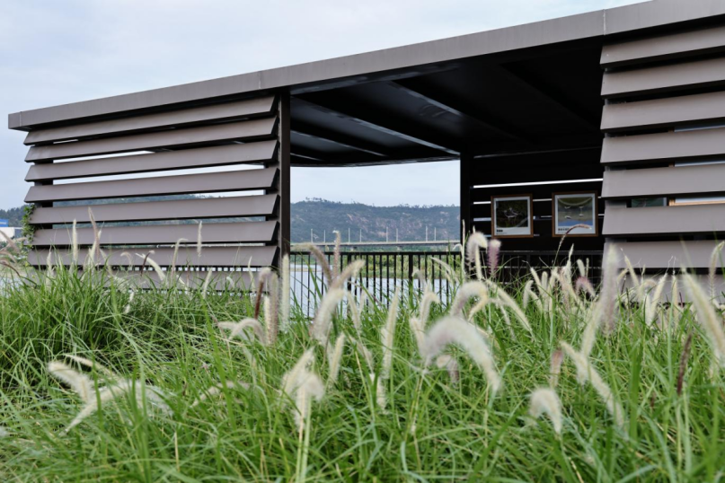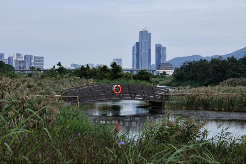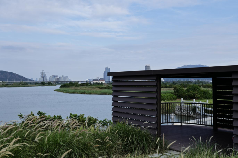 新增的观鸟屋建设在湿地两处水闸上方,在园路中处于高位,在这里,不仅能将整个湿地生态系统尽收眼底,还能在冬季邂逅水鸟群,与全运会赛事期间的体育激情形成“动静交织”的独特体验。
