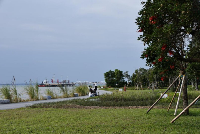 您可漫步绿油油的草坪,或静坐石凳之上,看海浪轻拍堤岸,赏夕阳染红河天,远离城市喧嚣,尽享自然宁静与美好。