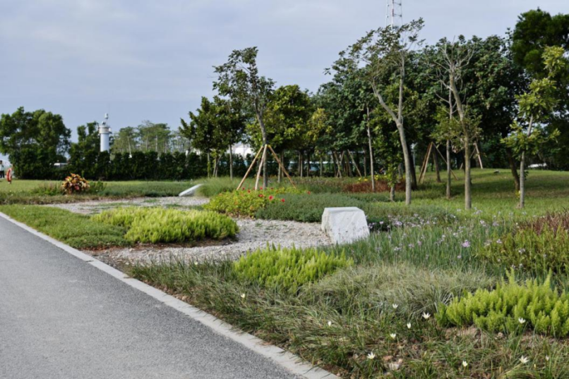 湿地一期二期,超16万株红树扎根滩涂,从潮间带的桐花、秋茄、卤蕨到岸上的水黄皮、黄槿、苦郎树等,“水生→湿生→陆生”及草灌乔林生态梯度错落铺展,构筑起多功能绿色屏障,海岸防护力MAX。