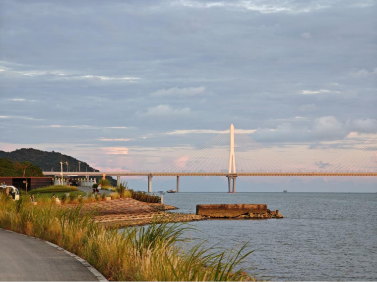 沿岸海堤景观再升级,最美“S”弯变身条形景观带,新增498米红羽绒狼尾草随风摇曳,粉紫花穗与落日余晖交映,氛围感拉满,随手一拍皆是治愈系大片。