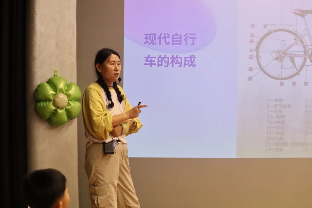 孩子们首先参与了主题读书会,由橙长教育创始人、儿童早期教育指导师葛荣担任阅读指导老师,与大家共读《我爱骑行》一书。