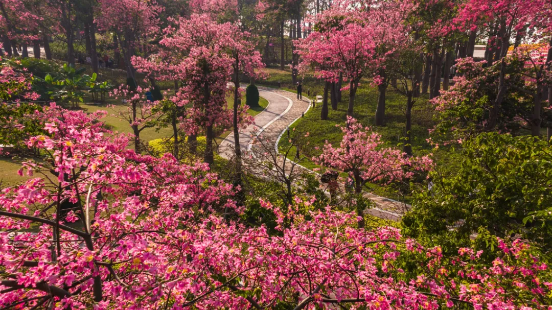 4300株美丽异木棉分部长度约6公里,延绵不绝的粉色浪漫持续2个月之久,每年吸引无数游客驻足拍照打卡,成为横琴一道靓丽的风景线。