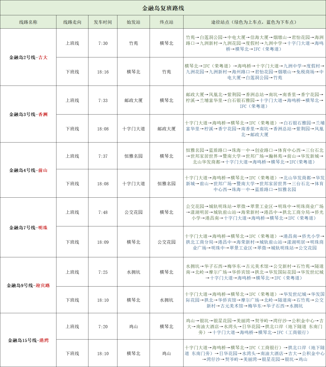 金融岛复班线路汇总图