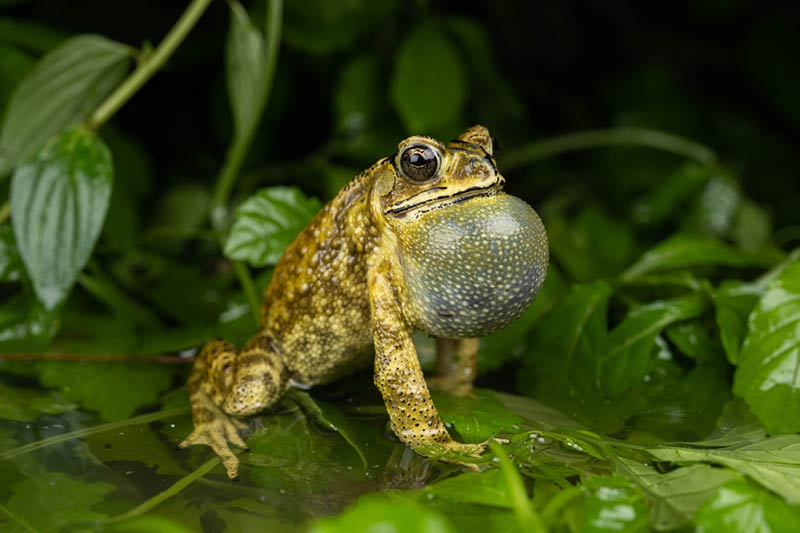 中大型蛙,雄性體長約60毫米,雌性可長達100毫米。背部由褐黃至深褐不等,全身佈滿疣和小瘤。