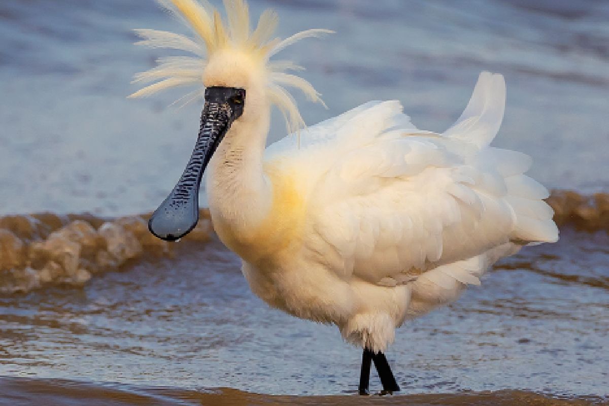 常集群活动于沿海滩涂、 鱼虾塘、湖泊等,觅食时将琵琶状嘴 伸入水中左右横扫,捕食鱼虾、无脊椎动物等。