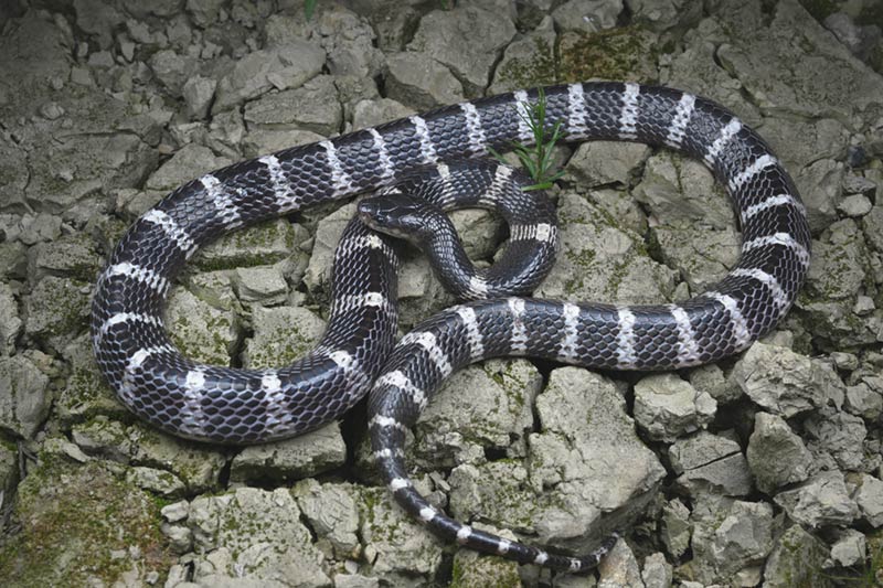 辨認特徵:黑白環間紋,黑間在身體前端較闊,近尾部則與白間相若。