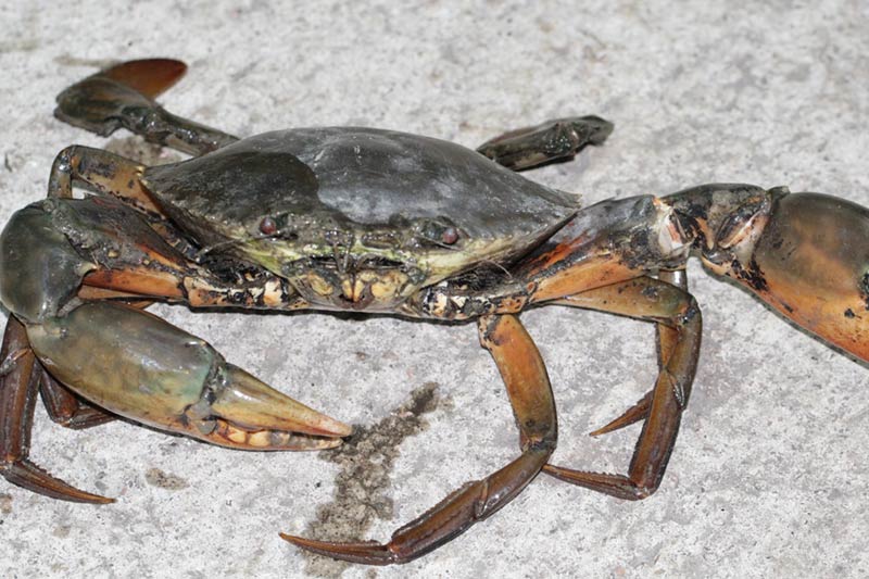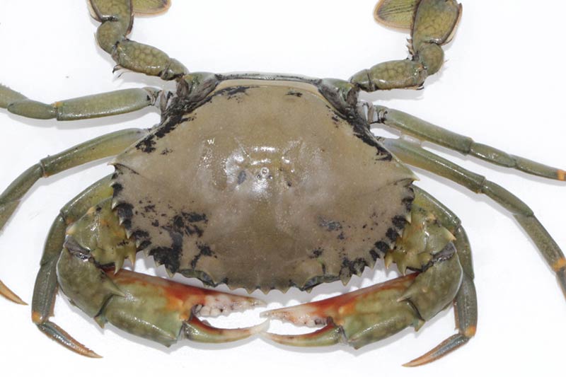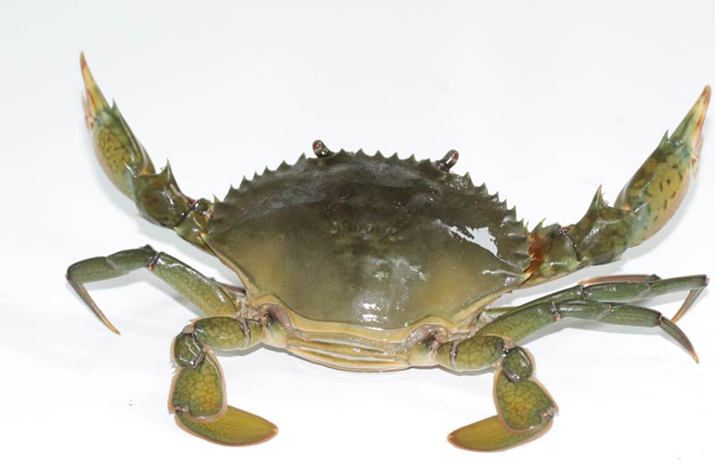 拟穴青蟹,又称青蟹、红鲟、蝤蛑、泥蟹。一般体重300~500克,头胸甲呈卵圆形,背面圆突,有“H”形图案,表面光滑;体色青绿色,无小突起及白色斑点