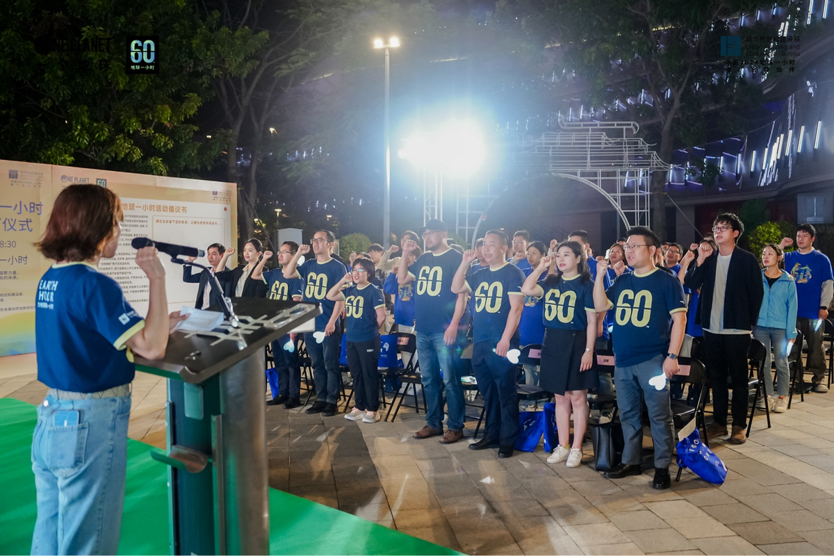 仪式上,合作区城市规划和建设局副局长谭惠芳带领在场嘉宾共同宣读环保誓言,表达了推动环境保护行动的决心。谭惠芳呼吁,广大市民、社区、企业积极参与地球一小时行动,在日常生活中积极践行简约适度、绿色低碳的生活方式,共同助力美丽中国、美丽横琴建设。