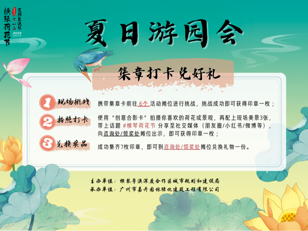 此外,市民还可在游园会中参与科普闯关挑战赛,完成后领取荷花好礼。