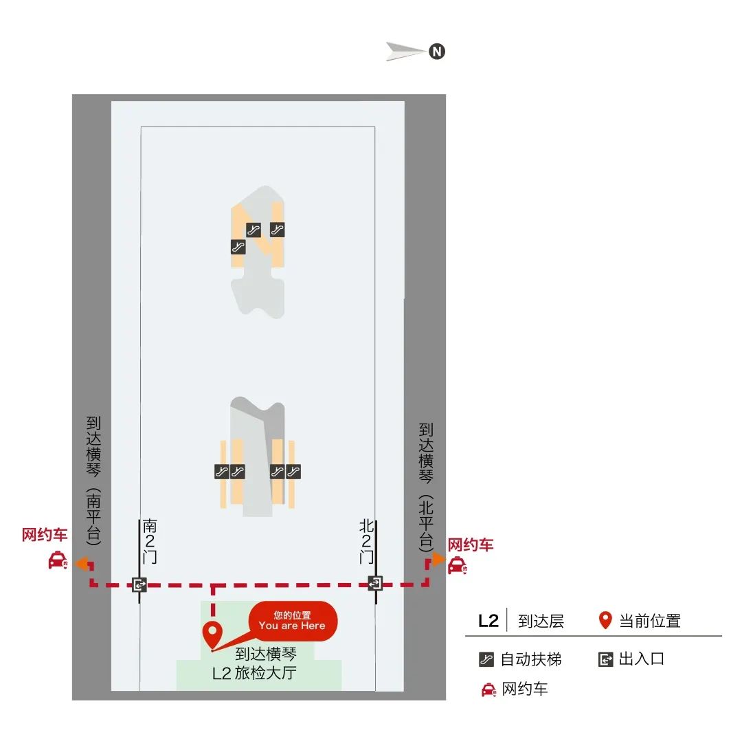 网约车上车点位于L2层南、北平台。(网约车即停即走,请注意把握时间。)