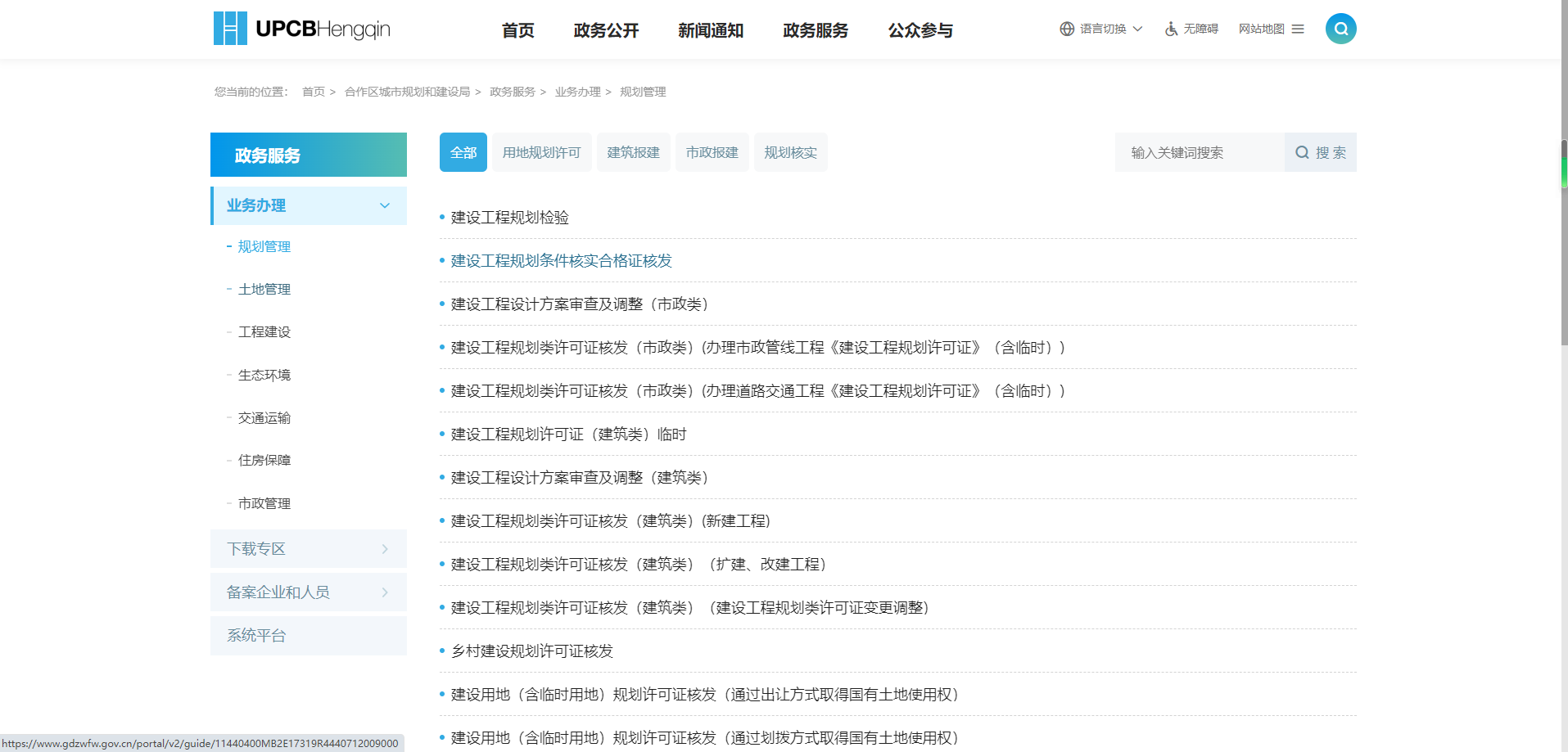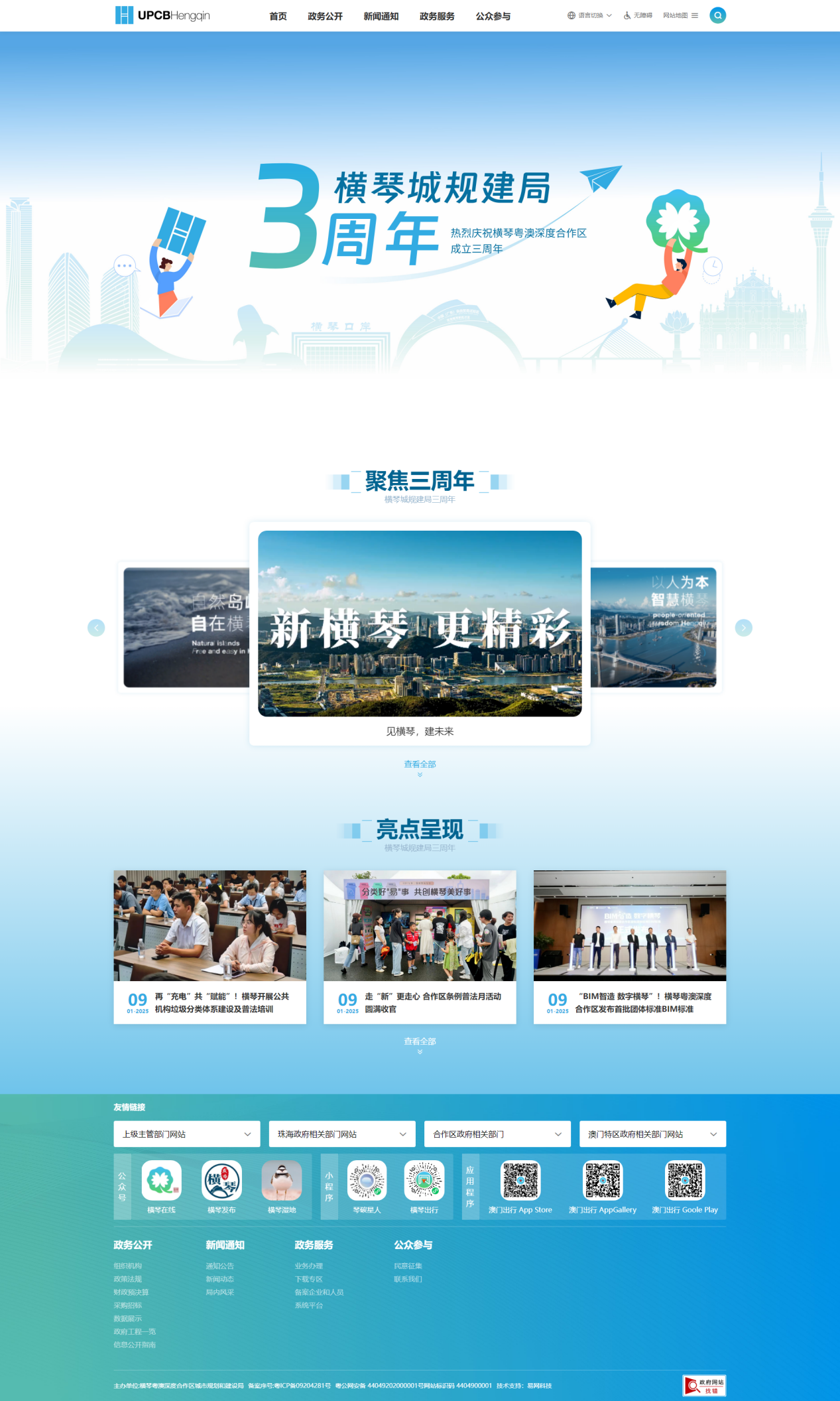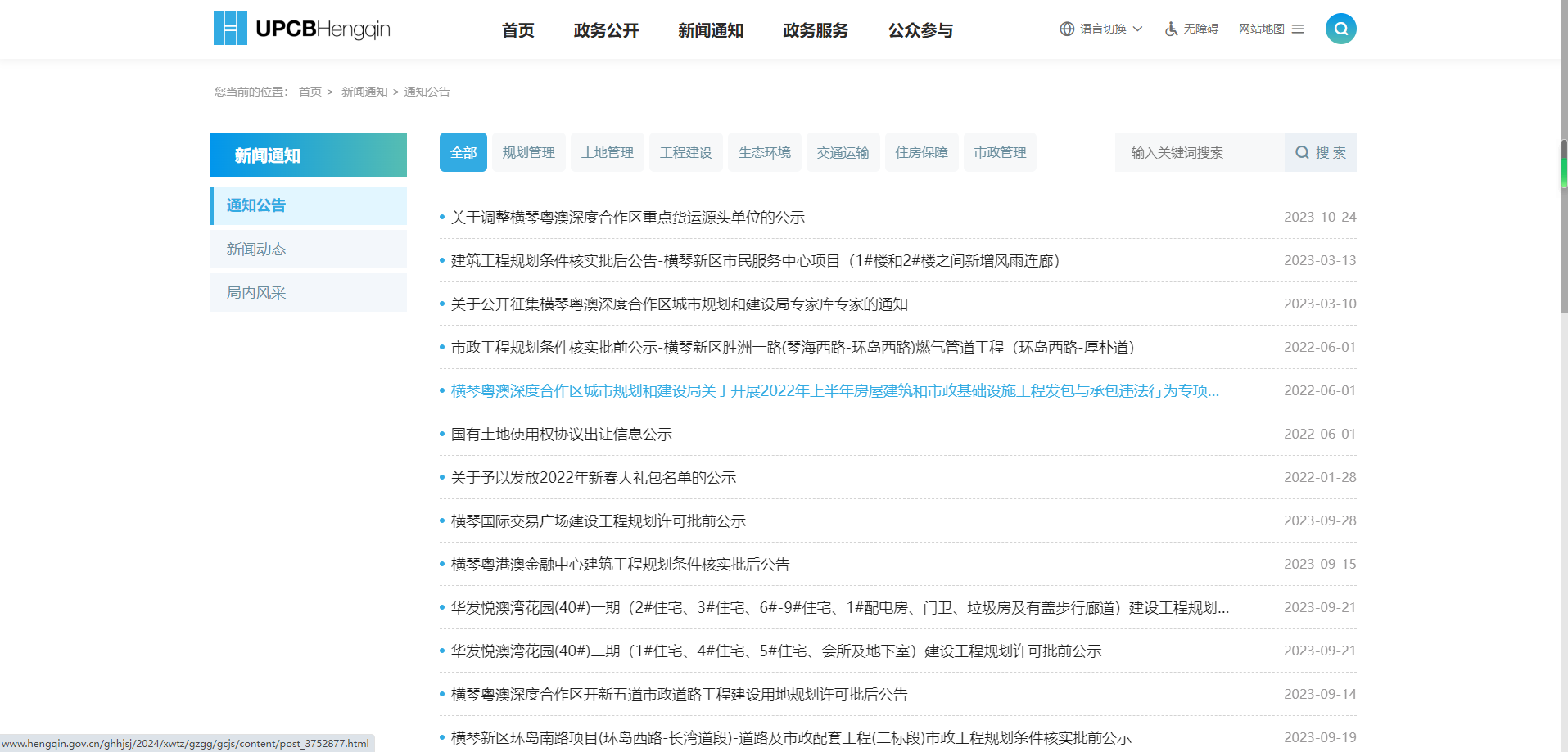 让我们一起看看,升级后的横琴粤澳深度合作区城市规划和建设局网站的各栏目细节吧!