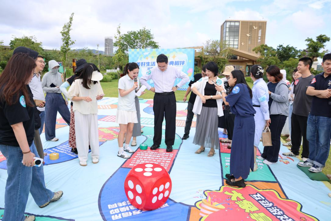 知识比拼环节,采用“真人飞行棋”的竞赛方式,每个格子对应不同难度的知识问答,回答正确即可获得相应积分。各组成员依次摇色子前进,大家群策群力不断围绕《中华人民共和国民法典》婚姻家庭编的相关知识点展开了激烈的角逐,一路过关斩将赢取积分。经过紧张刺激的比拼,最终决出了优胜团队,并颁发了精美礼品以示鼓励。