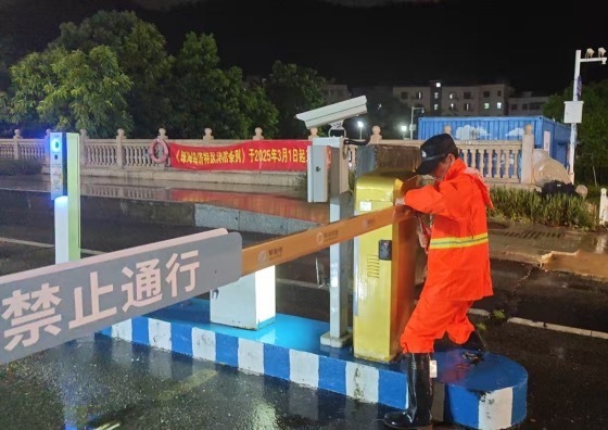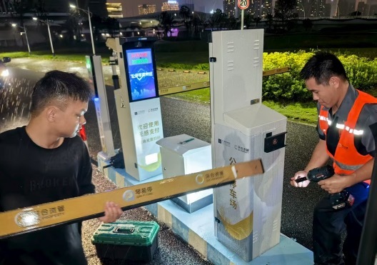 提前部署做好车辆保障,组织公交集团安排20辆应急车辆,保障人员转运安置。台风登陆前24小时完成45个公共停车场全部道闸断电拆除,对岗亭、围挡、设备箱等关键设施实施加固及沙袋压载,停车场排水渠、排水泵均测试畅通。