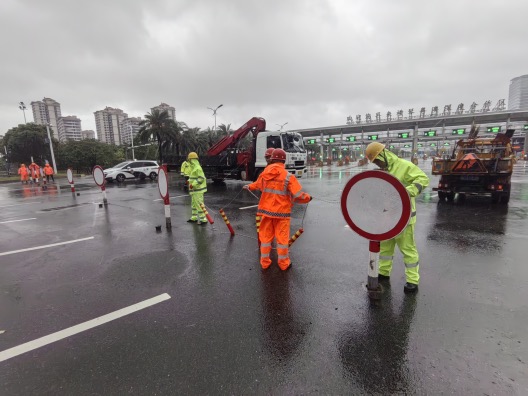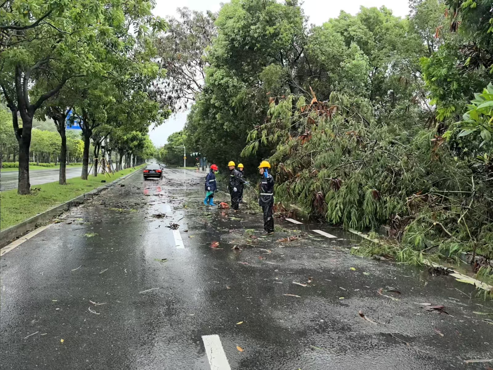 台风登陆过后,城规建局第一时间组织人员,开展市政道路专项巡检,共发现并处置积水内涝点137处,护栏扶正42卡,标志牌倒伏、倾斜修复19杆。针对道路积水、树木倒伏、护栏倾倒影响道路通行的情况,优先针对横琴大桥、环岛东路、港澳大道、中心大道、长隆大道(长隆段)、富祥湾路、横琴口岸周边等城市交通关键枢纽进行保障工作。
