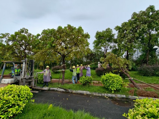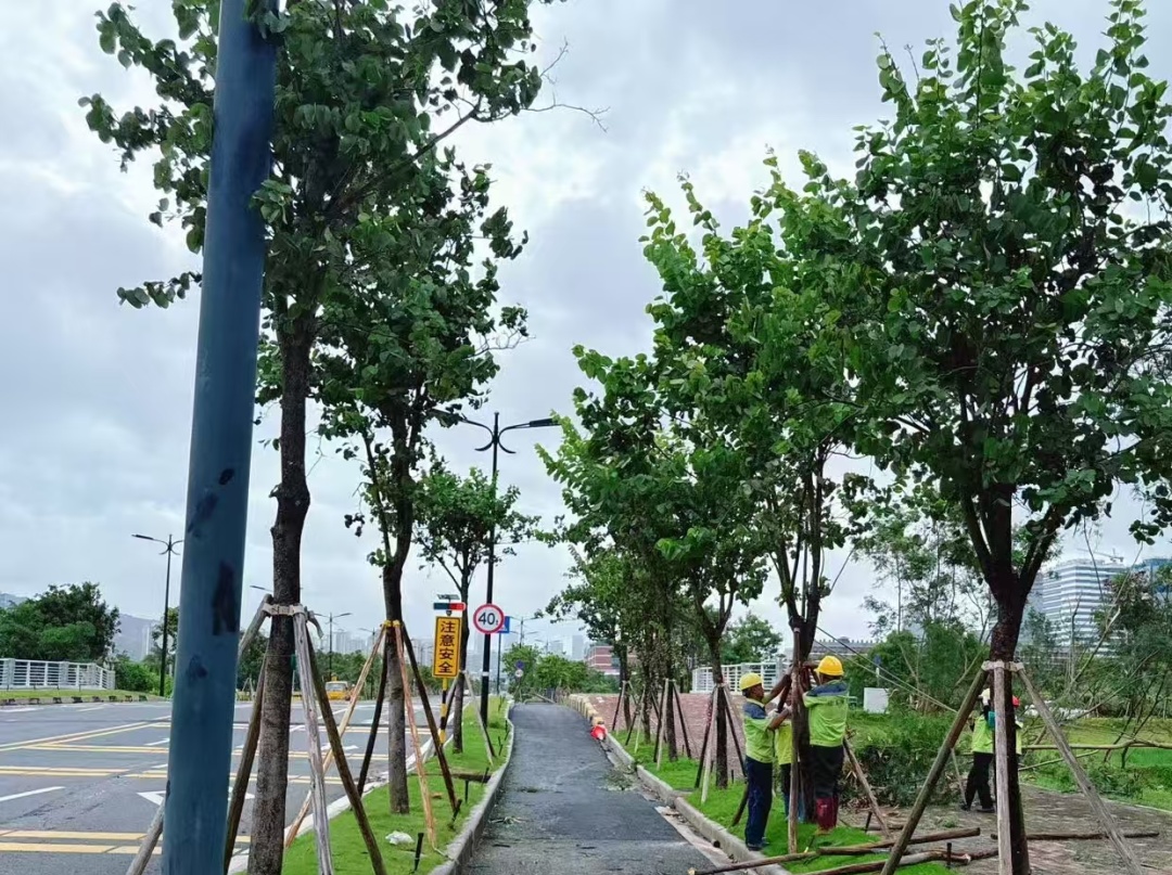 展开与时间赛跑的“护绿行动”。组织园林抢险队全员上岗,抢险人员约875人次,投入吊车、钩机、挖机等车辆设备约68台,计划恢复倒伏树木、对受损严重的树木进行修剪、加固,避免二次倒伏。