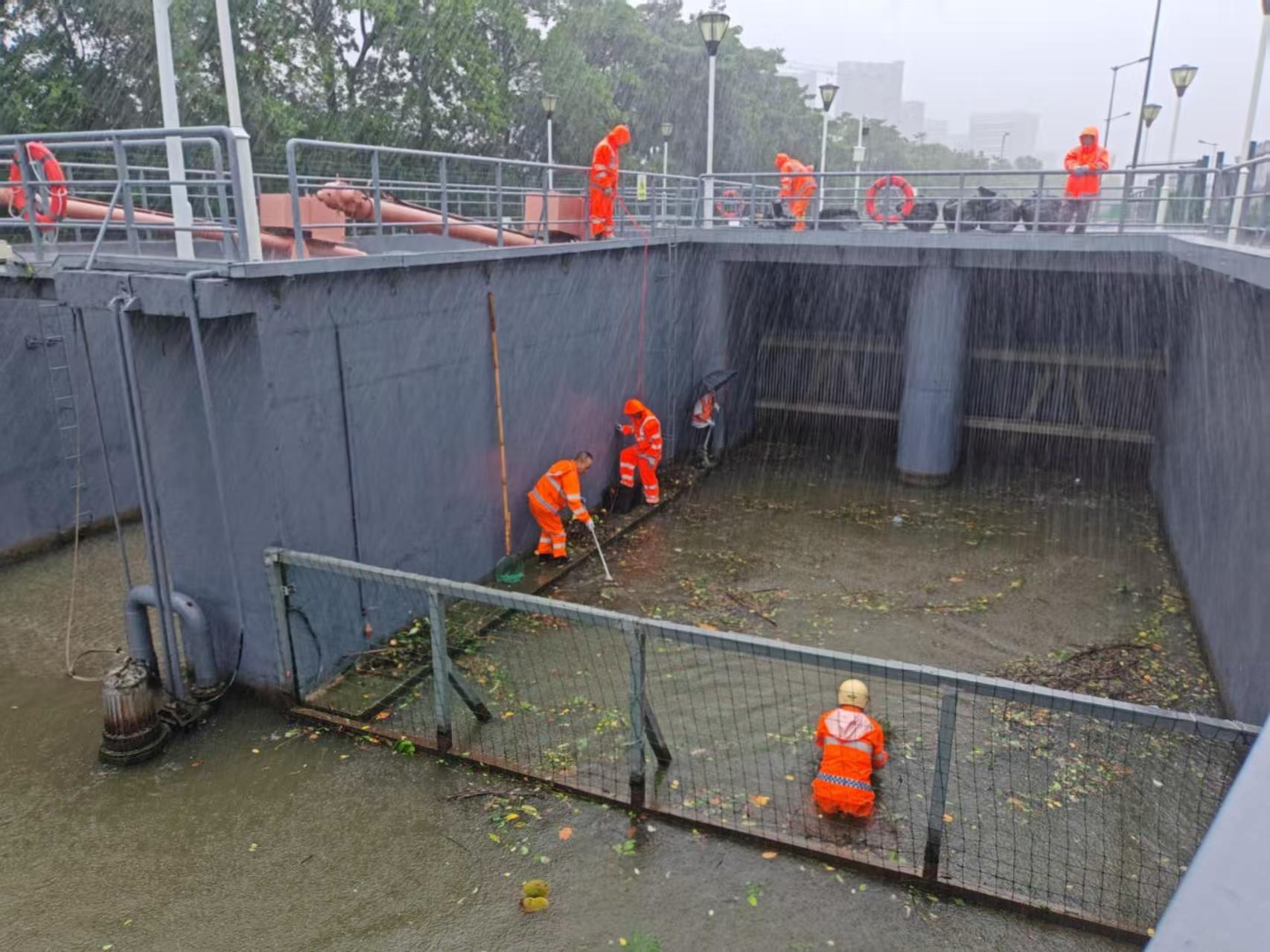 对合作区市政道路范围的户外广告设施、公交候车亭、变压器、配电箱、交通标识牌、各类灯杆、护栏等易受台风影响的设施设备进行全面排查;对合作区内道路雨水篦子进行清理。