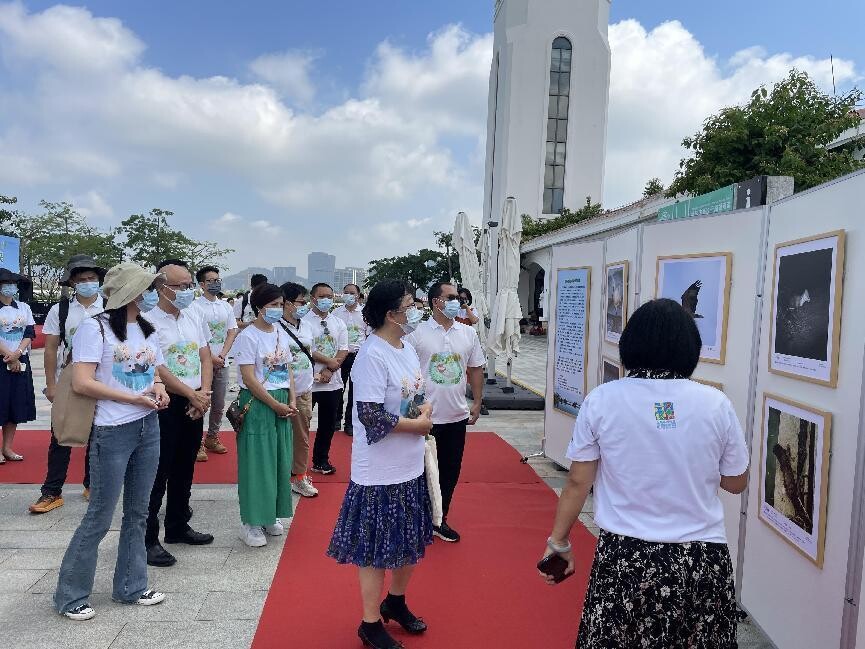 5月20日上午在花海长廊二号驿站举办“国际生物多样性”系列宣传活动开幕式上,合作区城市规划和建设局谭惠芳代理副局长致开幕词,并向澳门特别行政区环境保护局、澳门特别行政区市政署、澳门大学中华医药研究院、合作区人民检察院、珠海市生态环境局、珠海市自然资源局、广东珠海淇澳—担杆岛省级自然保护区等15家单位代表赠书《横琴野生鸟类》。