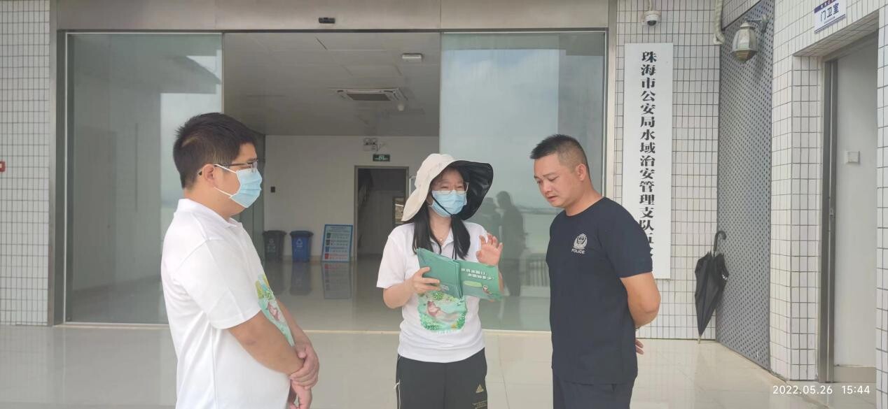 工作人员向珠海市公安局水域治安管理五大队介绍国家重点保护野生动物相关法律法规