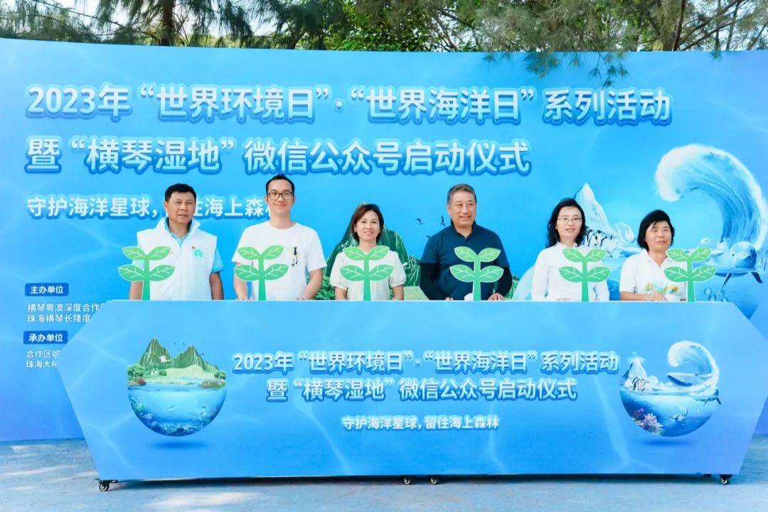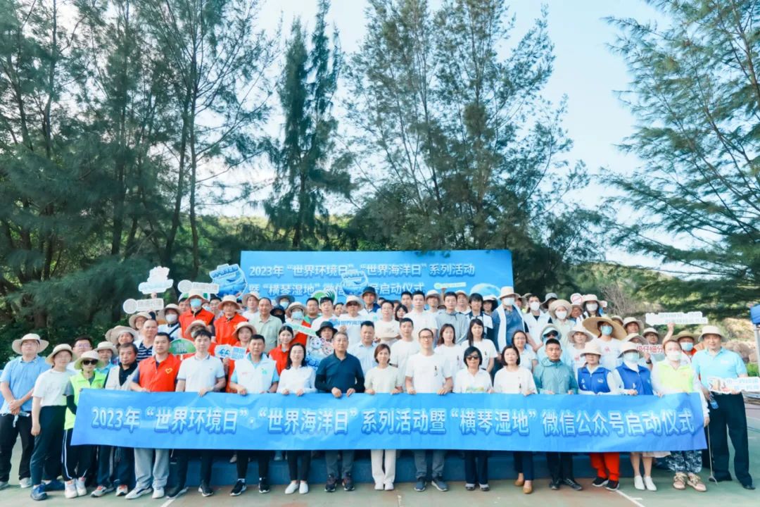 6月5日上午,由横琴粤澳深度合作区城市规划和建设局(以下简称“横琴城规建局”)、珠海横琴长隆度假区(以下简称“横琴长隆度假区”)主办的2023年“世界环境日”·“世界海洋日”系列活动暨“横琴湿地”微信公众号启动仪式在横琴大东湾沙滩成功举办,合作区各单位党员干部和志愿者、珠海横琴长隆度假区和相关公益组织等百余人参与活动。