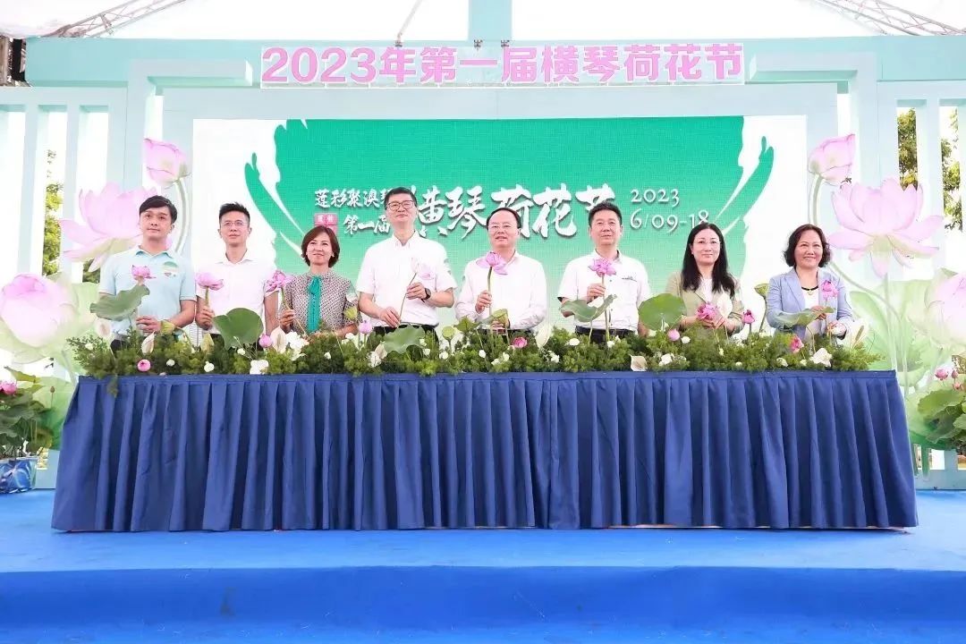 合作区执行委员会副主任牛敬、澳门市政署市政管理委员会副主席罗志坚、合作区城市规划和建设局局长张国基、副局长谭惠芳、合作区民生事务局副局长冯方丹、澳门培正中学副校长陈敬濂、首都师范大学横琴子期实验中学副校长邓佑琴、合作区行政事务局综合事务处处长梁伟銮出席开幕仪式并为荷花节揭幕。