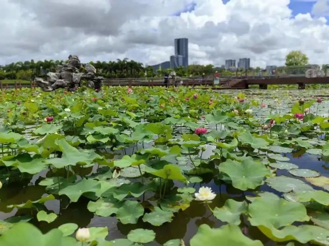 据悉,首届横琴荷花节选用了诸多新优品种,搭配睡莲、水生植物以及夏季草本花卉,打造出如诗如画的赏荷胜地。为了让市民和游客更好地了解荷花的种类和特点,荷花池畔特设置了图文并茂的科普展板,并在栈道间悬挂品种科普牌,带领公众品鉴荷花的姿、容、色、韵。
