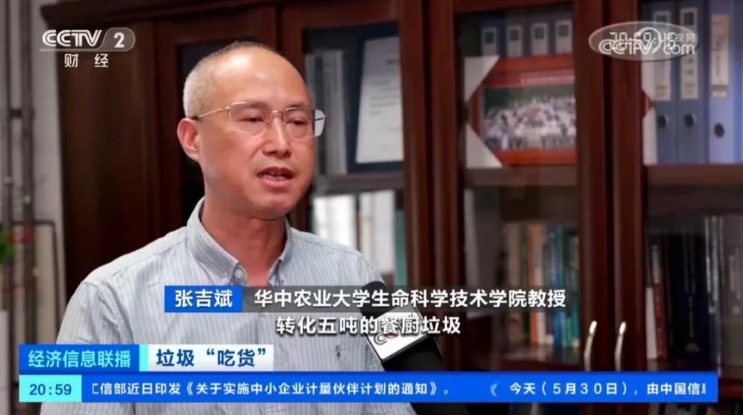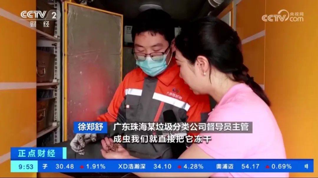 华中农业大学生命科学技术学院教授 张吉斌:“转化5吨的餐厨垃圾,可以产生1吨的鲜虫,产生大概2吨左右的昆虫虫肥,实现零排放,而且把它变废为宝,可以实现绿色循环的产业链。”