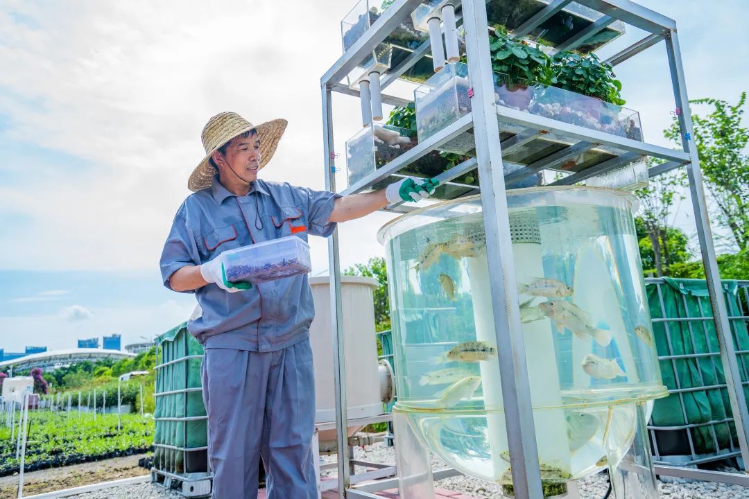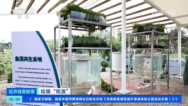 根据测算,1克黑水虻的虫卵孵化出的幼虫,可处理约10公斤餐厨垃圾等有机废弃物,可产生1.5公斤-2公斤鲜虫和2公斤-4公斤的有机肥。基地还探索出了一套“鱼菜共生系统”,实现了垃圾绿色循环利用。