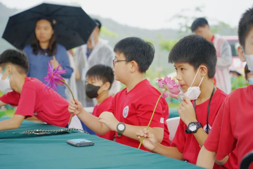 当天上午,同学们跟随导师游览合作区荷花园,在欣赏优美风光的同时,仔细聆听科普导师的解说,并通过“荷花知识官”有奖互动问答、“莲鞭接力赛”科普互动游戏,加深对荷文化和荷花知识的理解。