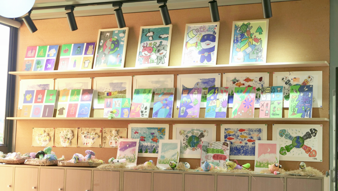 另外,科普中心设有艺术作品展示墙、图书宣传角,展示墙收录合作区居民及往期课程学员垃圾分类艺术绘画作品,展现青少年关于垃圾分类、环保的艺术创想;图书角藏有《揭秘垃圾》《解救座头鲸》《零浪费生活》等书籍30余本,让居民朋友可以在知识的海洋里深入了解垃圾分类。