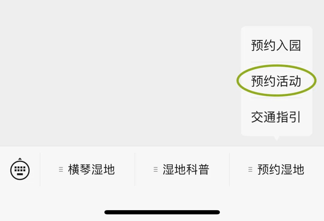 随后在公众号菜单栏点击“预约湿地”→“预约活动”,找到对应活动名称进行报名即可