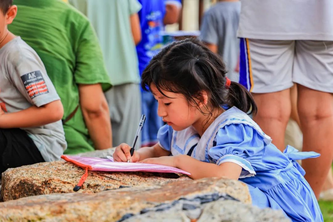 小朋友们一路探索发现,积极思考与提问,并将他们的收获记录在笔记上。最后,大家一起分享“我眼中的古树”,并在这场游园会活动中有所察、有所思、有所为,用自己的学习成果换得“古树小卫士”的荣誉称号。