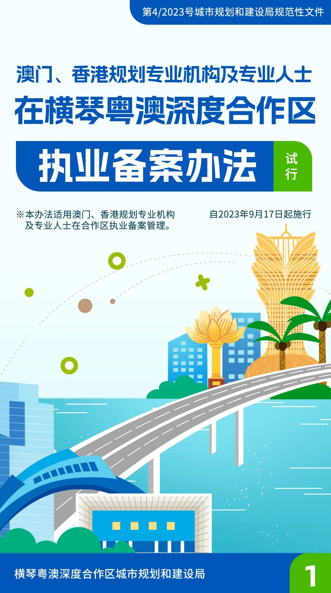 9月4日,由横琴粤澳深度合作区城市规划和建设局(下称横琴城规建局)起草、经合作区执委会会议审议通过的《澳门、香港规划专业机构及专业人士在横琴粤澳深度合作区执业备案办法(试行)》(下称《办法》)正式印发,将于2023年9月17日起实施。