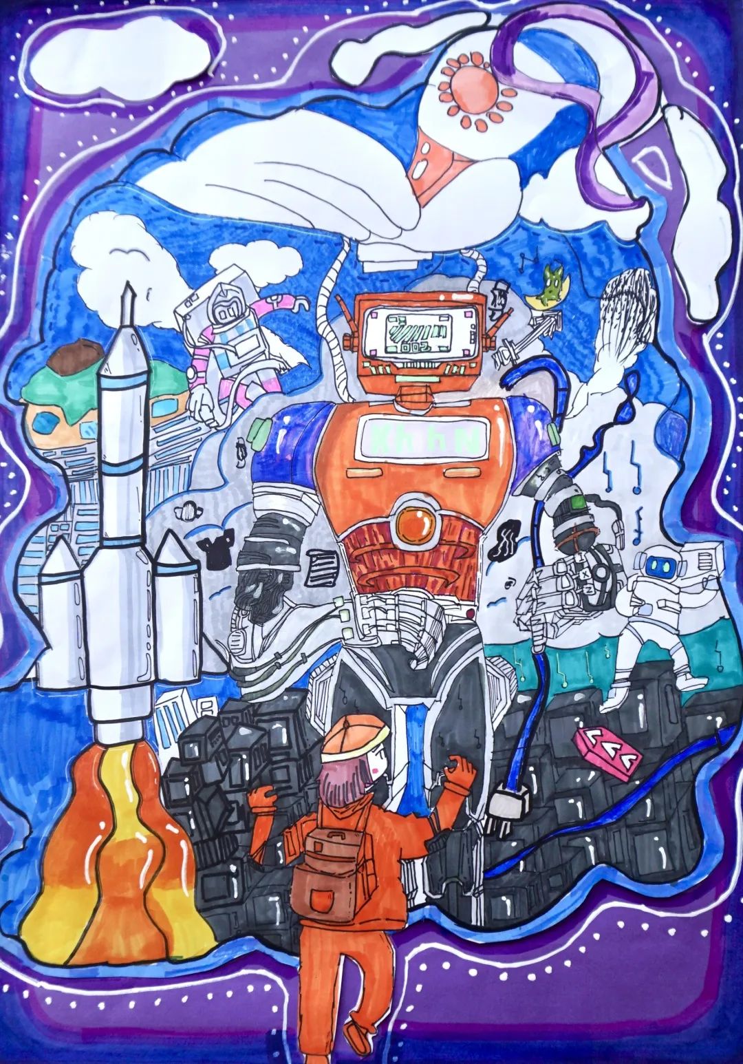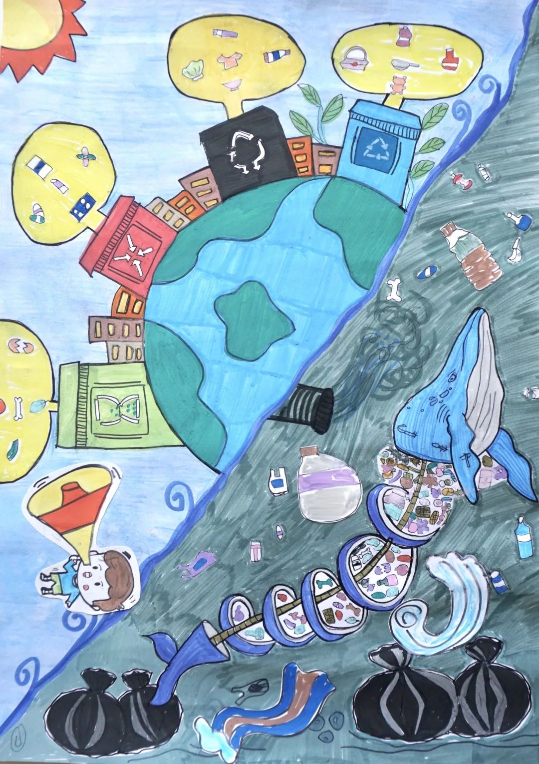 评委小组点评:主题鲜明,绘画语言恰当,画面色彩和谐,构图饱满,具有与年龄相符的趣味性,阐明了垃圾分类给我们的生活环境带来的美好变化。