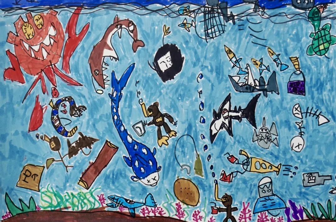 ▲孙康杰《在海里乱扔垃圾海洋动物会很生气》 6岁 横琴中心幼儿园