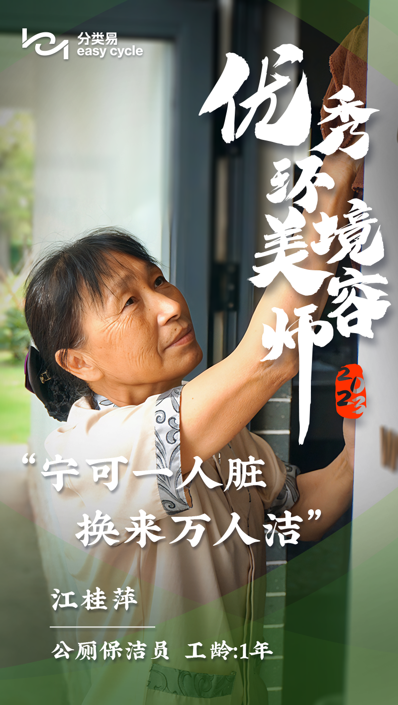 57岁的江桂萍是花海长廊的一名公厕保洁员,她为了提高公厕的舒适度,保障公厕环境卫生干净整洁,为市民营造洁净舒心的如厕环境。