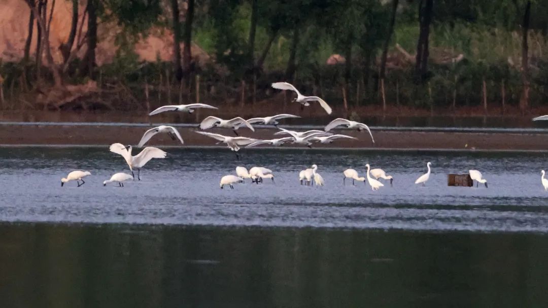 近日,素有“鸟类大熊猫”称号的黑脸琵鹭成群结队的出现在合作区的生态湿地上。在横琴首届观鸟赛上,观鸟者分别在十字门水道观测到9只,南部潟湖4只,二井湾湿地上空5只。过去在候鸟越冬季节,横琴的潟湖是黑脸琵鹭的重要停歇地。今年,调查员更是在南部潟湖发现了38只黑脸琵鹭,达到横琴城规建局开展生态修复工作以来的新高。