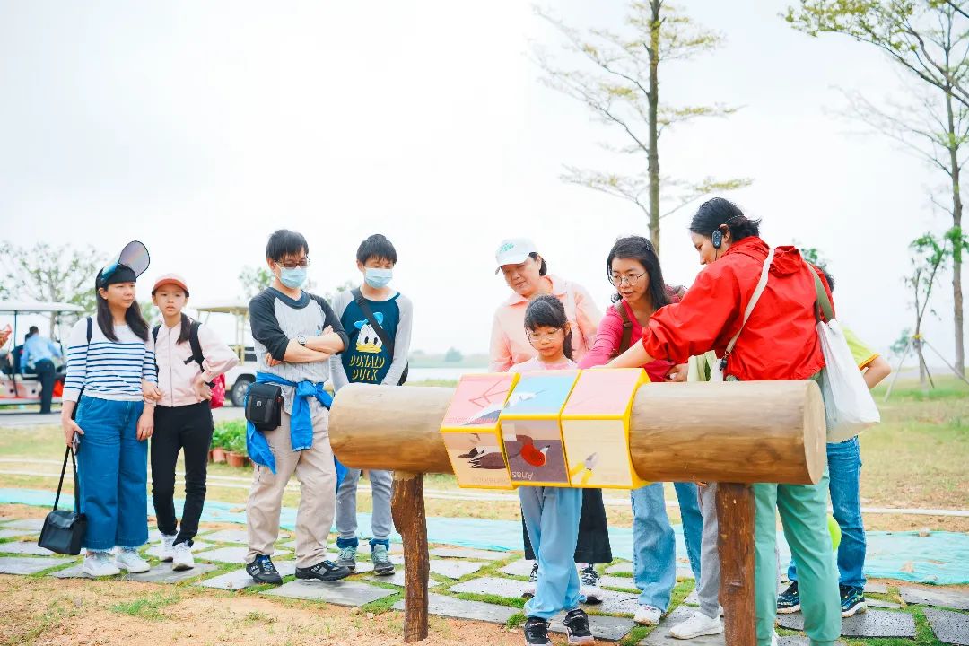 下午,在二井湾湿地公园红树林间观景游赏之余,亲子家庭们更参观了合作区首条自然教育径,让参与者全方位了解二井湾湿地公园的动植物资源相关知识。